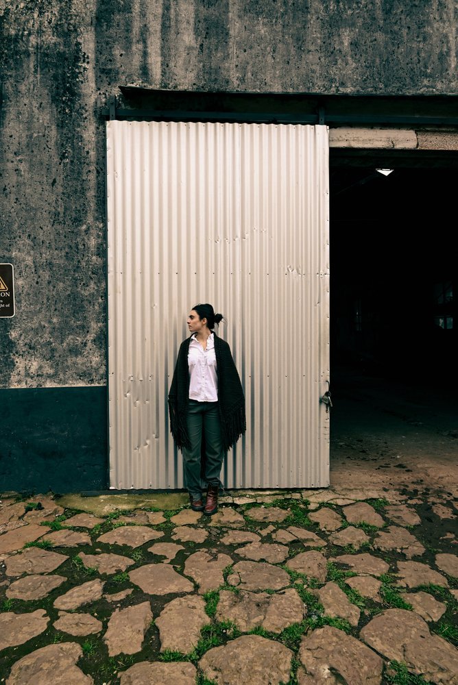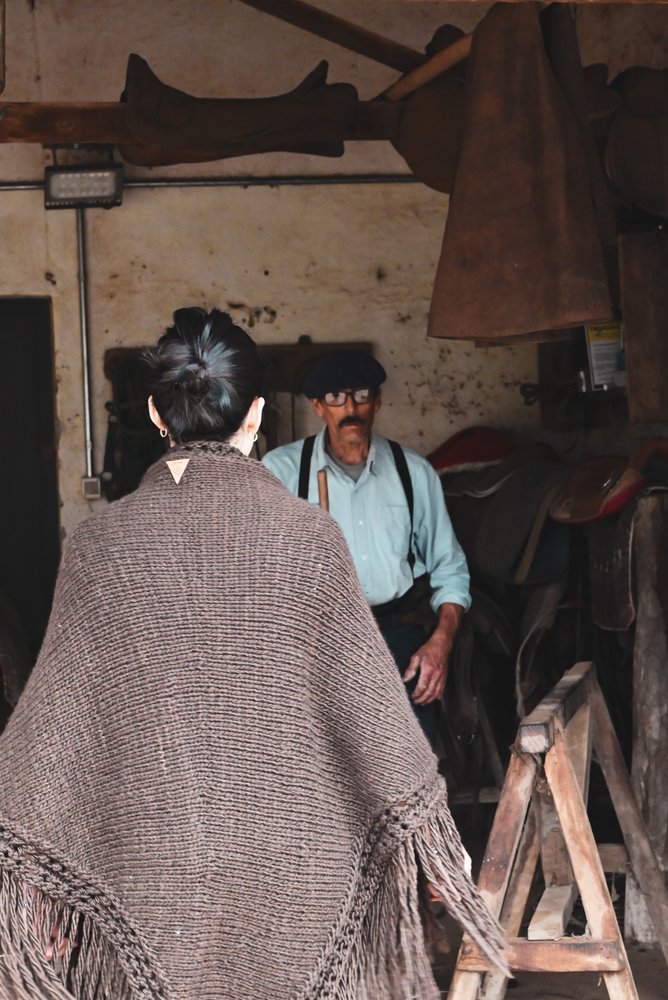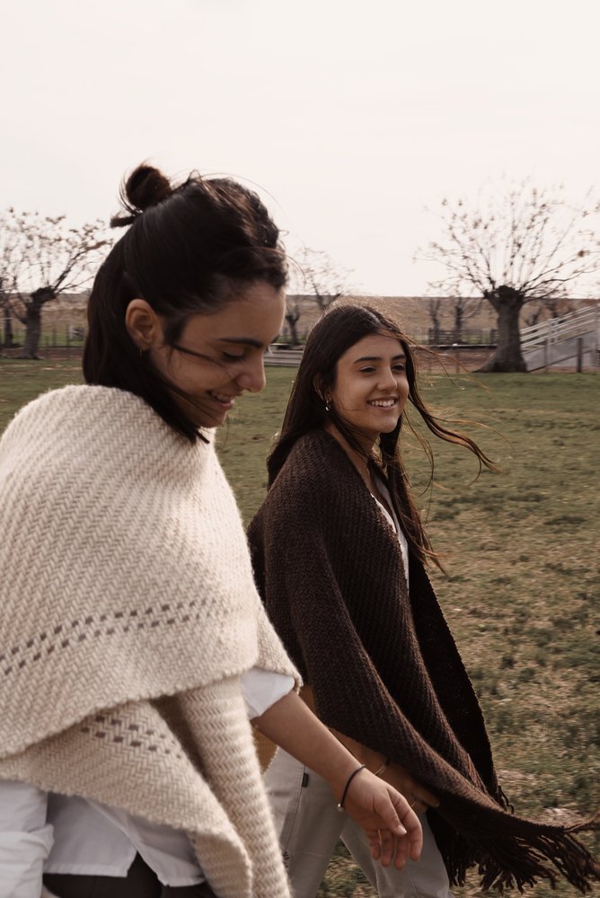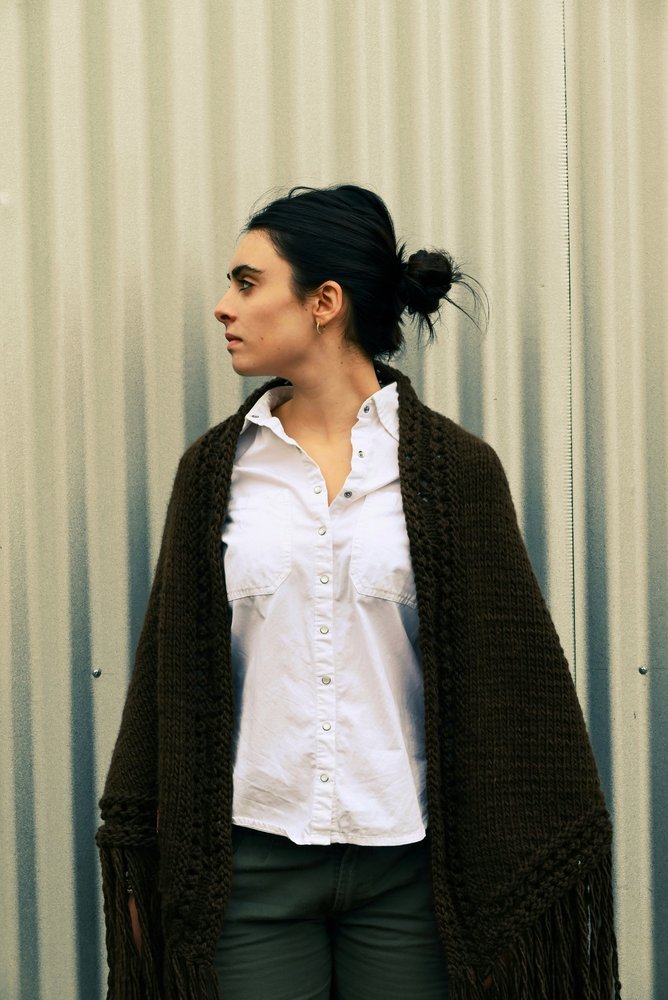 Triangulo artesanal tejido a dos agujas por mujeres uruguayas con 100% lana merino australiano de estancia Cerro del Bombero. Bombero hace referencia al nombre del cerro mas alto de la estancia, combina estilo y historia.